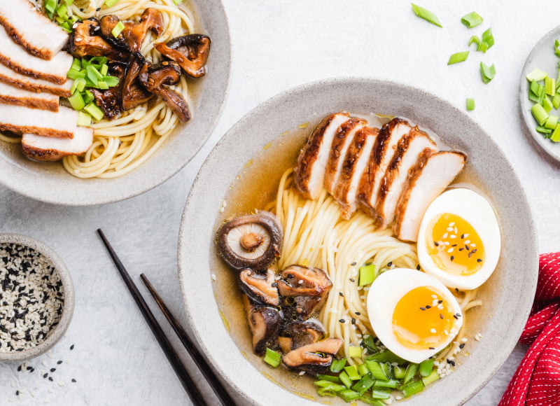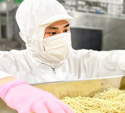 創業当初は生麺・茹で麺の製造販売及び学校給食の麺類製造を主としておりましたが、現在ではニップングループの一員として中食事業を軸とし、大手コンビニエンスストアに調理麺・惣菜・スナック麺をお届けしています。